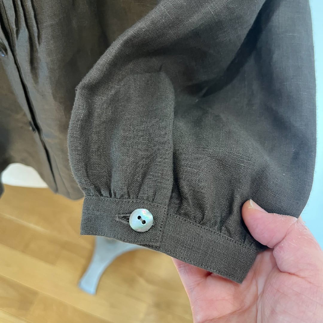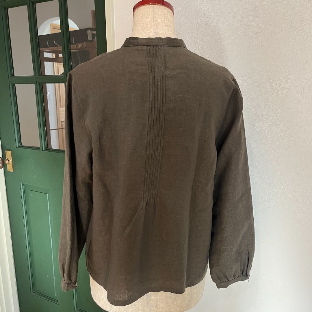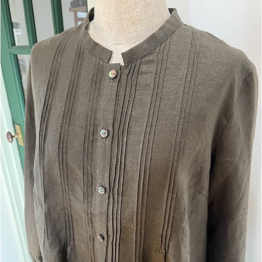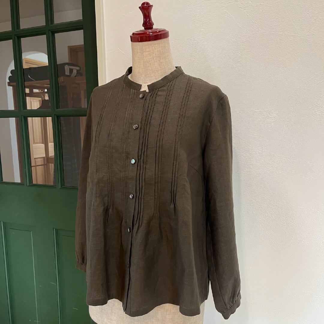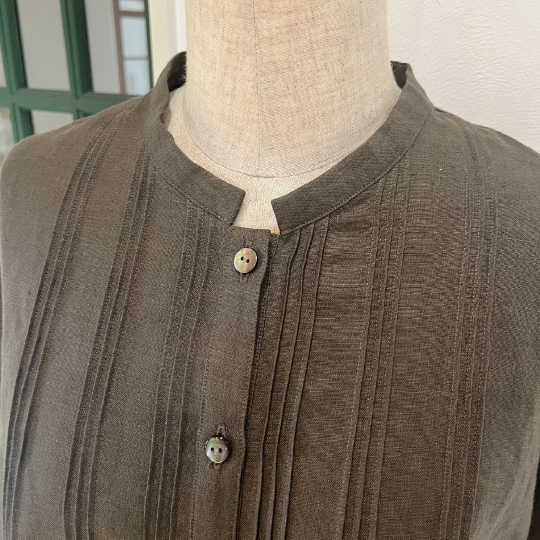 小さな衿と細やかなピンタックが凛とした印象のきれいめブラウス。 リネン素材が心地よく、Attaアトリエで作り続けてきた人気の定番アイテムです。オールシーズン着用可能。ボタンを開けてシャツのように羽織ったり、カーディガンと組み合わせても可愛く着こなせます。