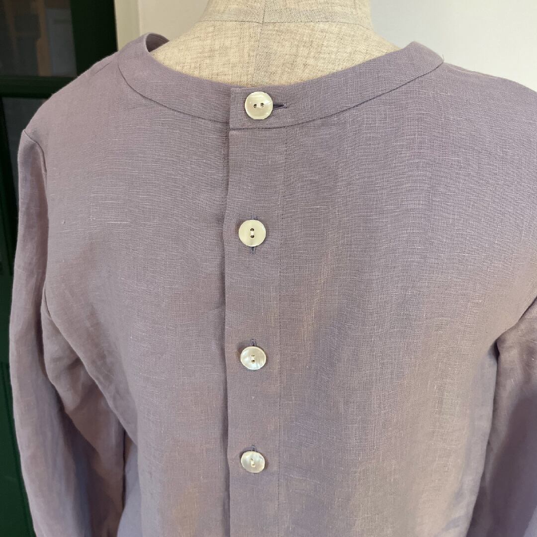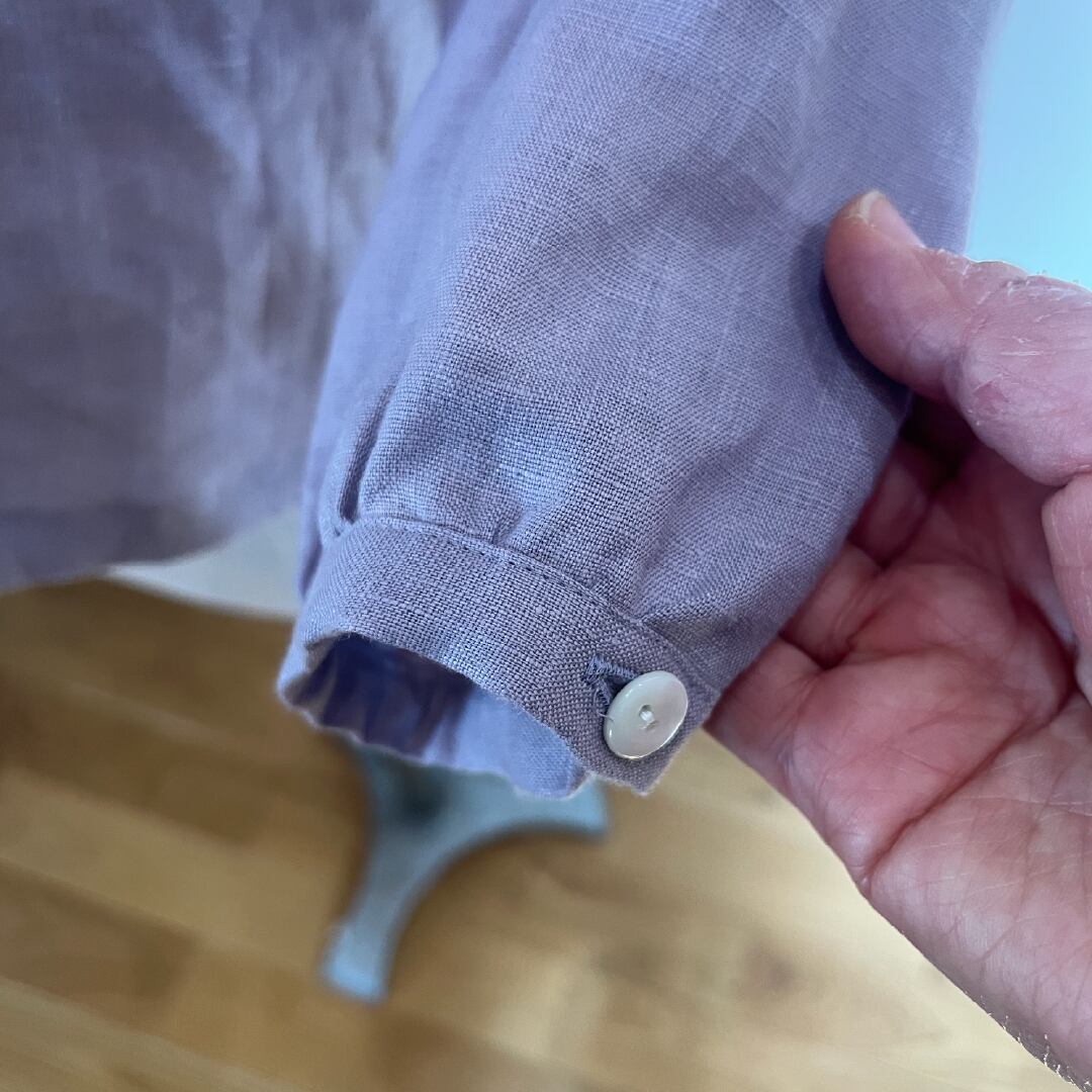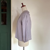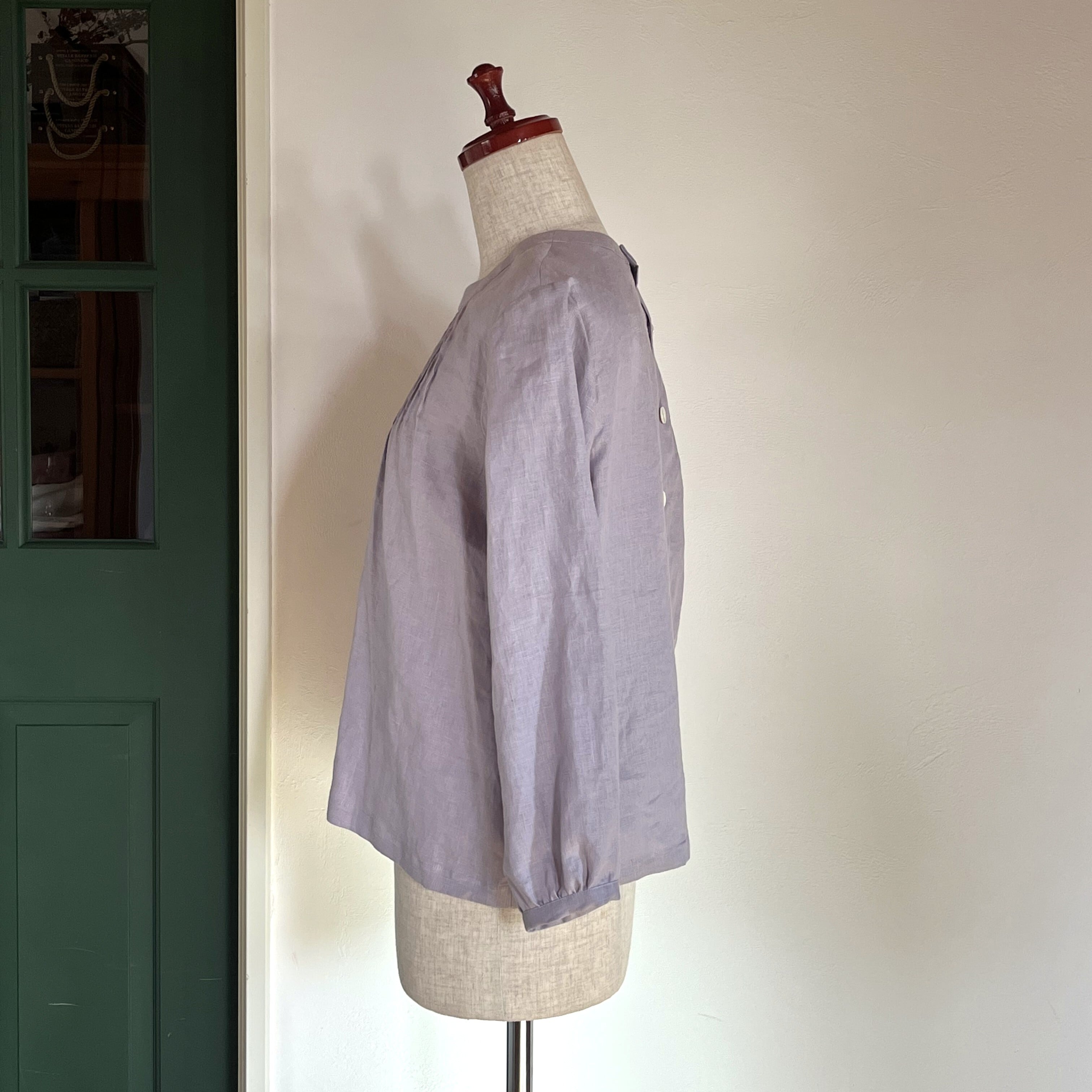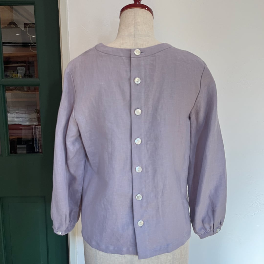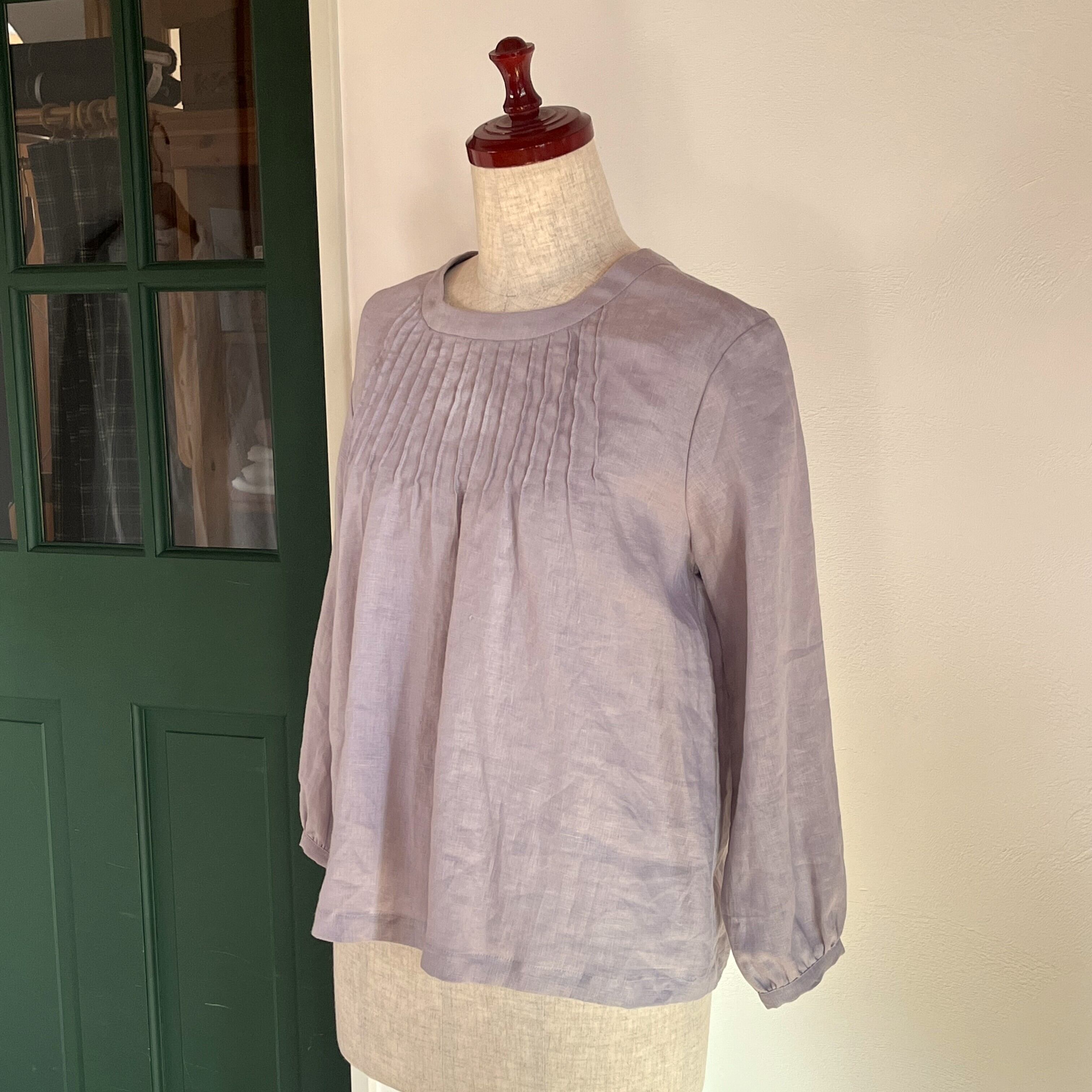 ピンタックの可愛さと甘さもありつつ、襟元がスクエアに近いのでキチンとした印象もあります。リネン生地は柔らかく着心地の良い品質です。