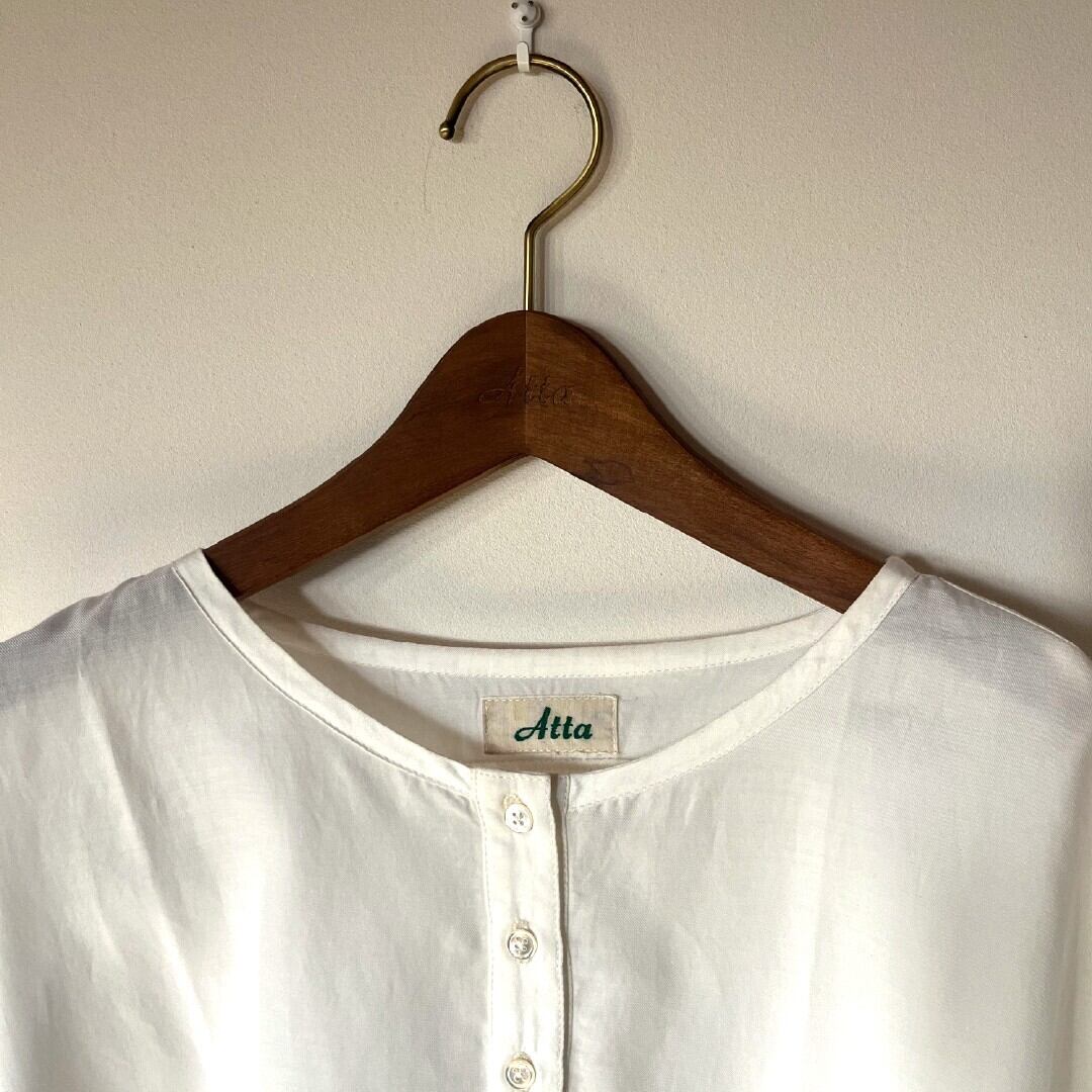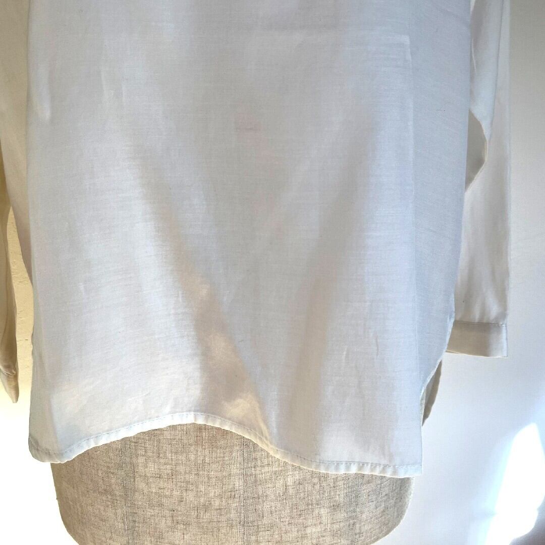 シンプルで使いやすいアイテム、前の裾がラウンドで、後ろの裾はスクエアになっています。1年を通じてお使いいただけます。