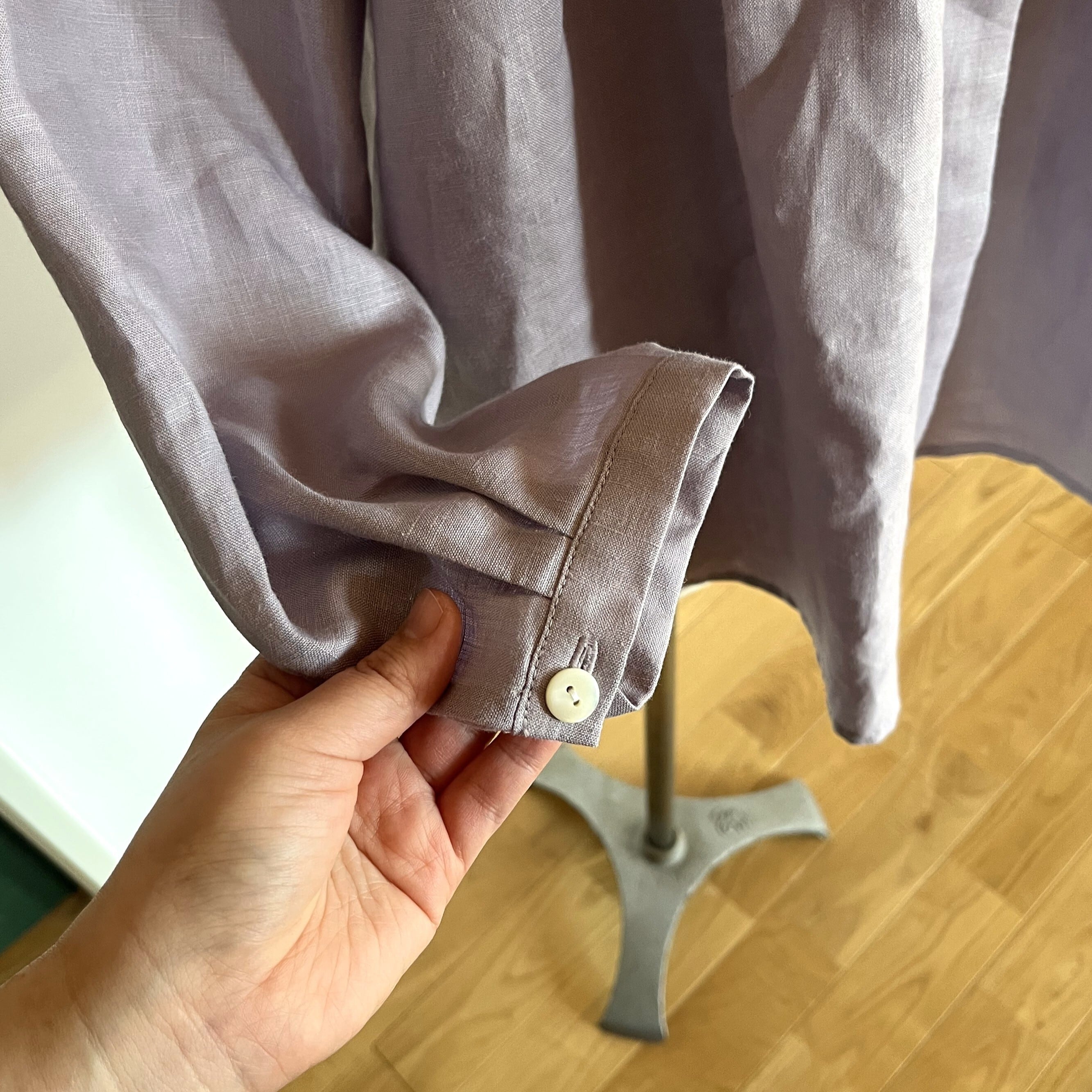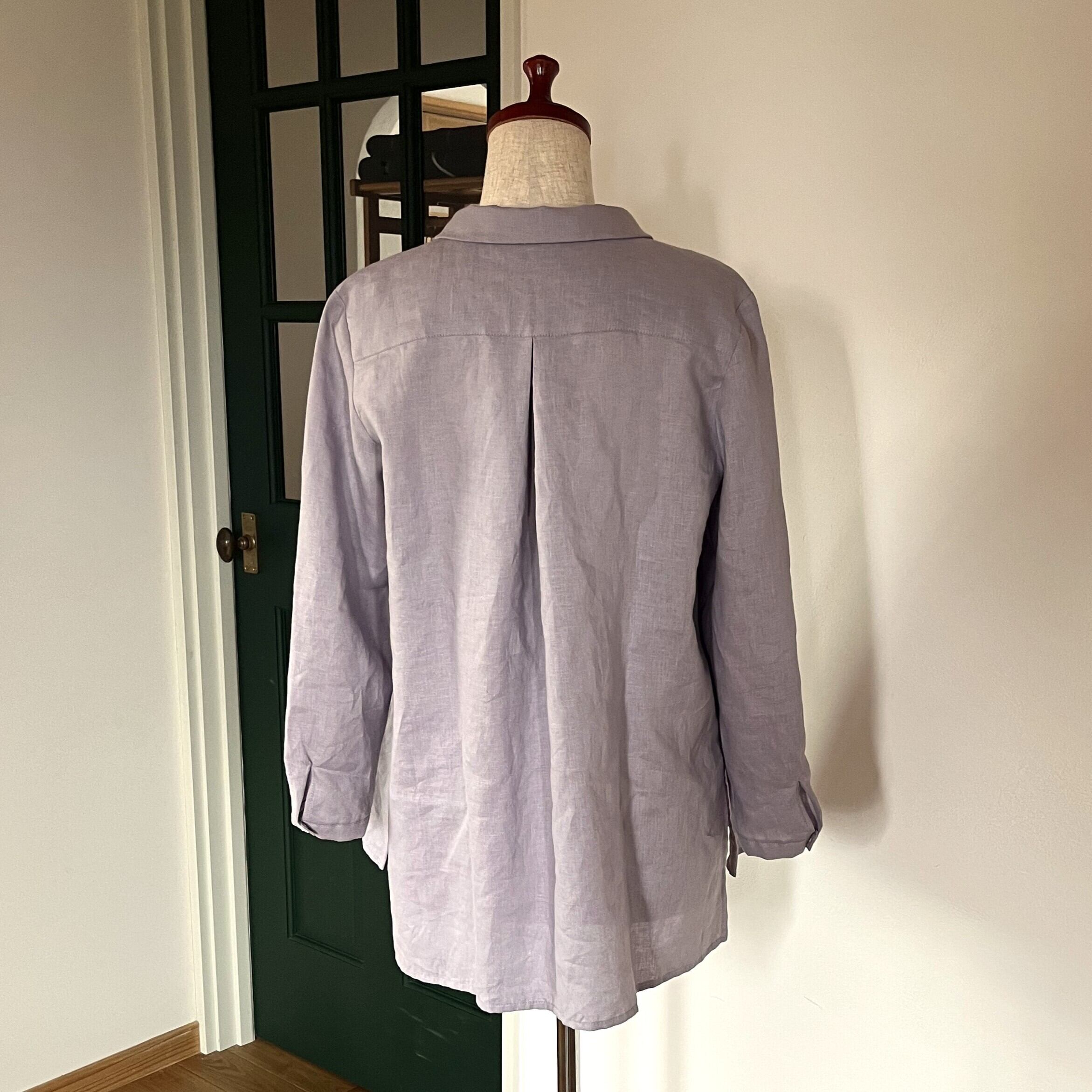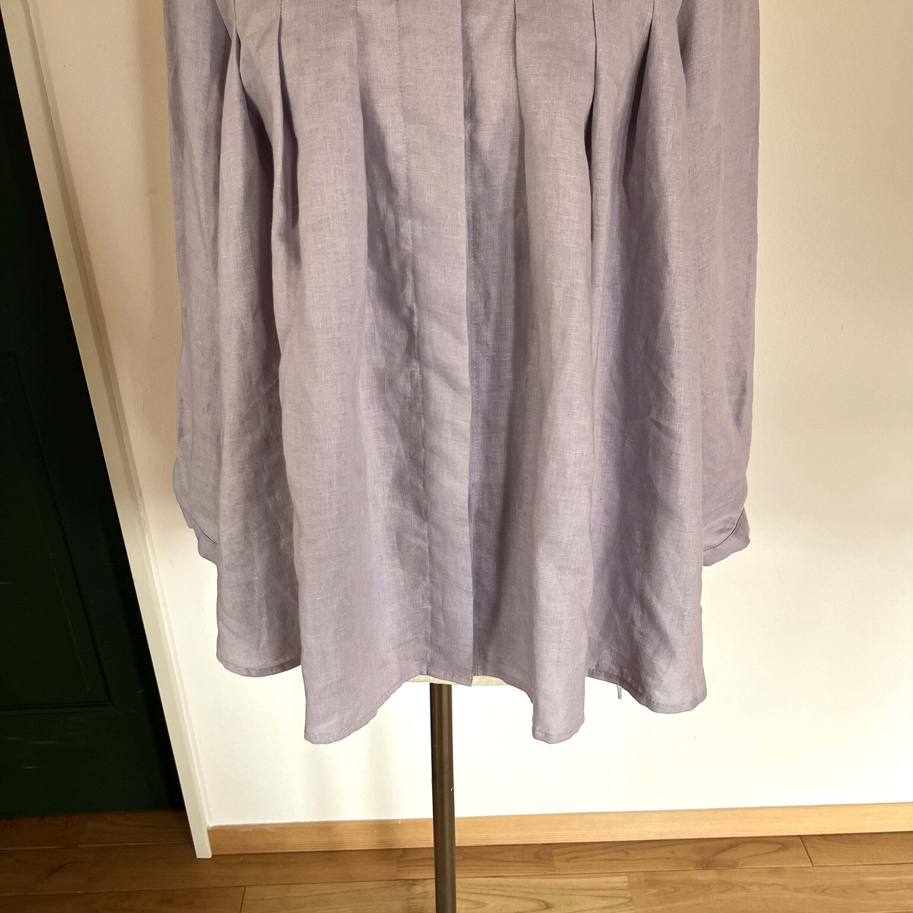 ライラック色のリネン生地を使ってお仕立てしました。