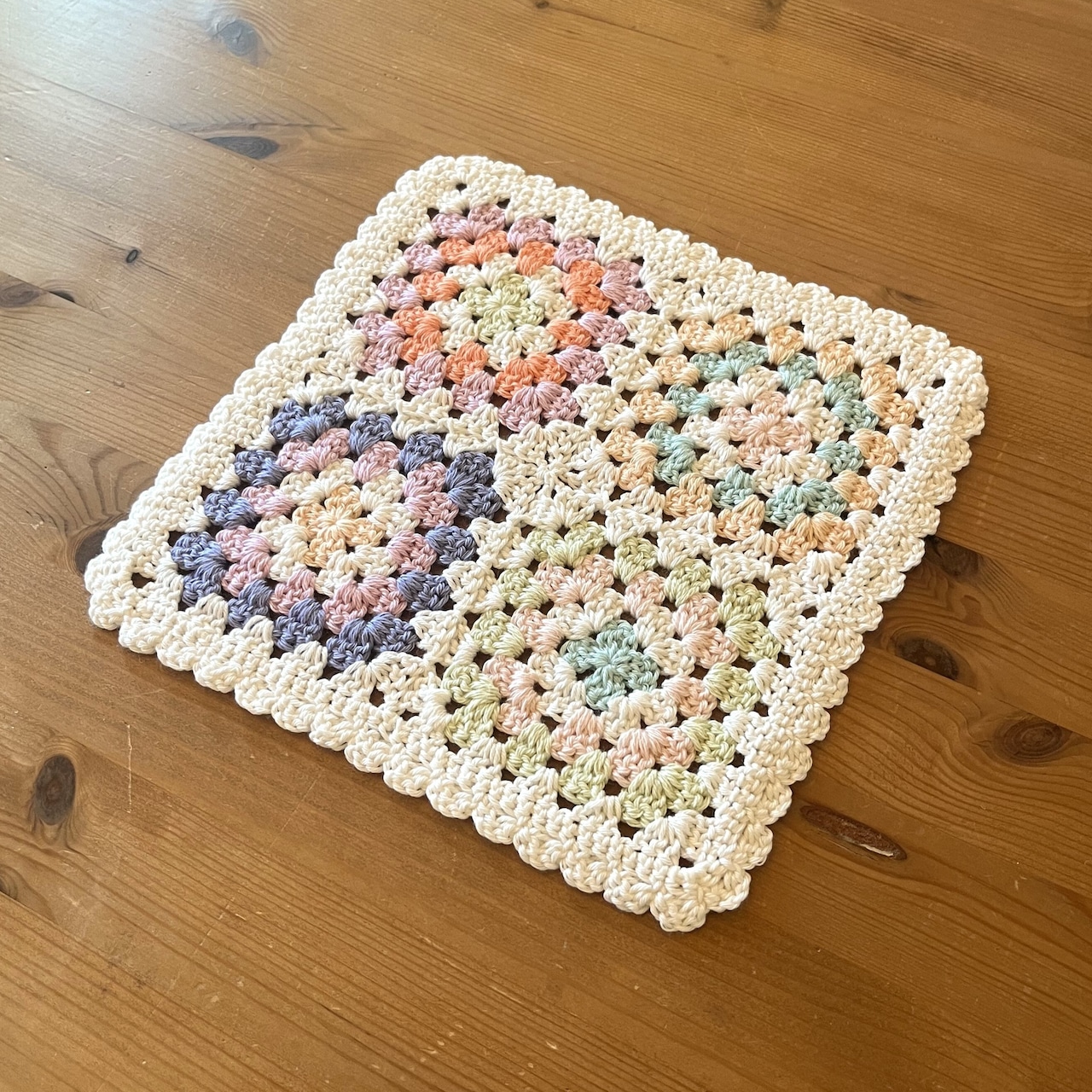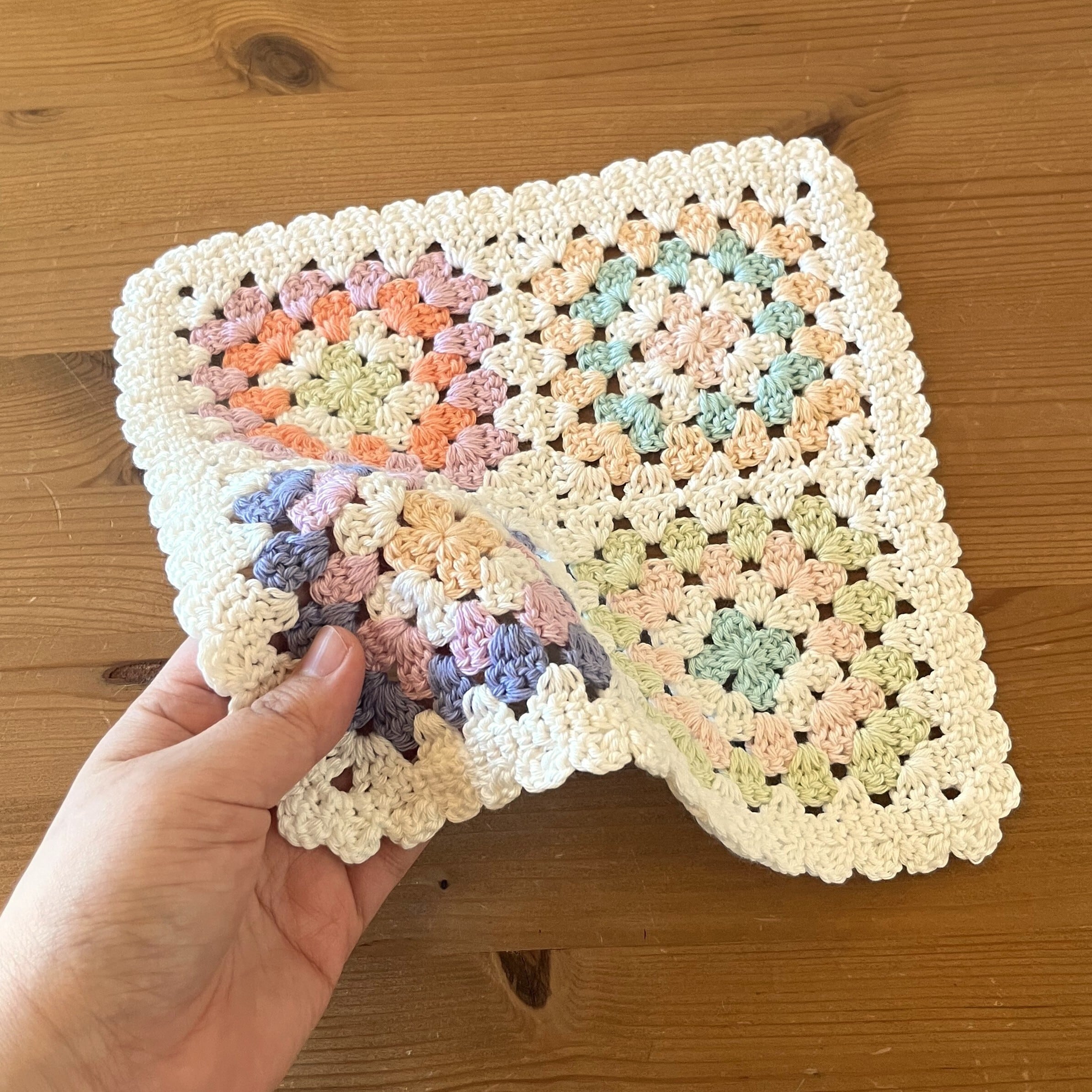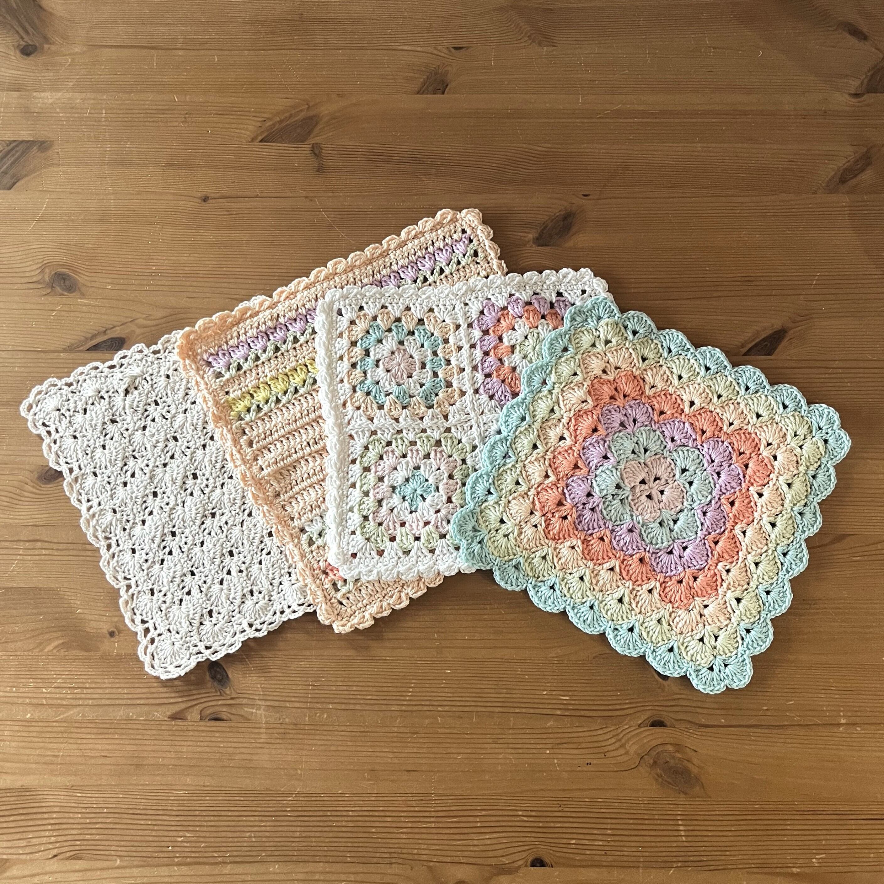 優しい色合いのモチーフが可愛い、オーガニックコットン100%のニットハンカチです。コットン糸で編んでいるので、肌触りが柔らかく、吸水性に優れています。洗うほどに柔らかく、吸水性はあがっていきます。手を拭いたり、キッチン用の水仕事に使ったり、テーブル拭きなど、あらゆる用途でお使いいただけます。ベビー用の沐浴タオルとしてもおすすめです。